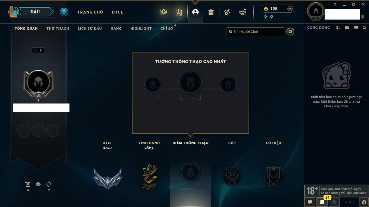 Rank Đơn: Bạc III Khung: Bạc Tướng: 170 - Còn 30078 THX Trang Phục: 225 Rank ĐTCL: Chưa Rank Linh Thú: 138