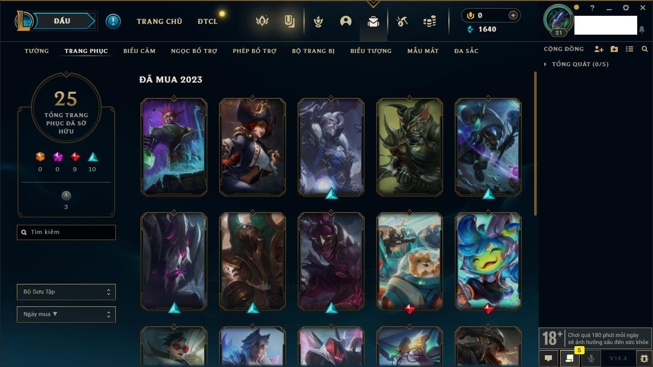 Rank Đơn: Chưa rank mùa nàoKhung: Chưa có khungTướng: 1 - Còn 0 THXTrang Phục: 0Rank ĐTCL: Chưa RankLinh Thú: 10