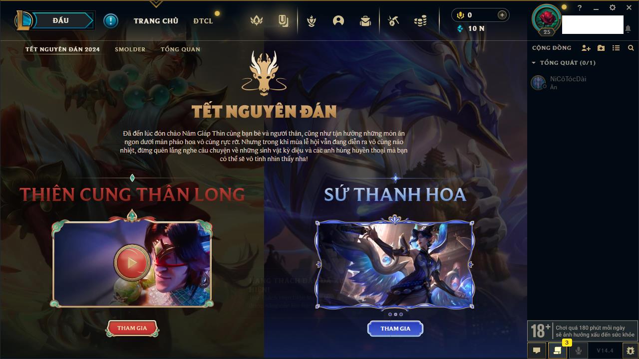 Rank Đơn: Chưa rank mùa nàoKhung: Chưa có khungTướng: 157 - Còn 12765 THXTrang Phục: 3Rank ĐTCL: Chưa RankLinh Thú: 78