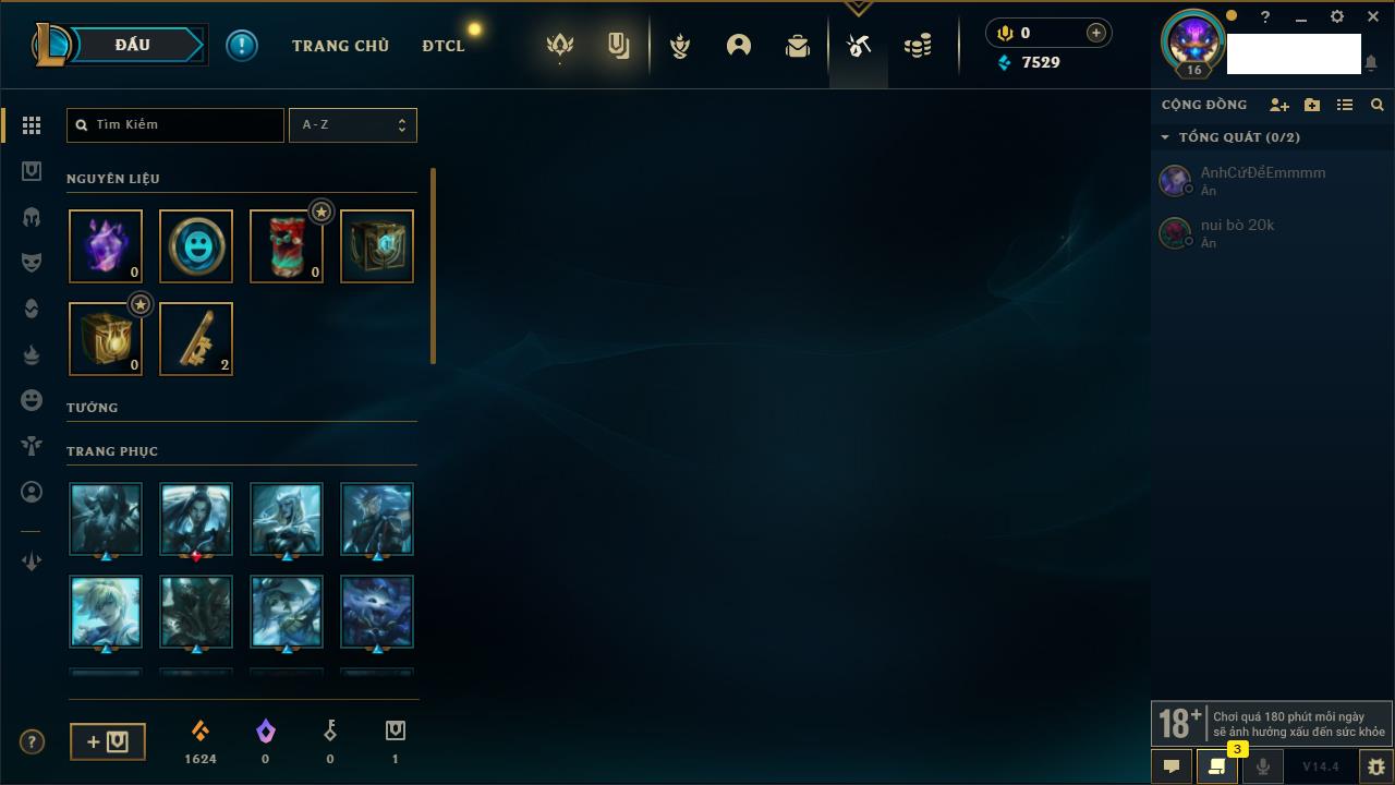 Rank Đơn: Chưa rank mùa nàoKhung: Chưa có khungTướng: 157 - Còn 11755 THXTrang Phục: 6Rank ĐTCL: Chưa RankLinh Thú: 24