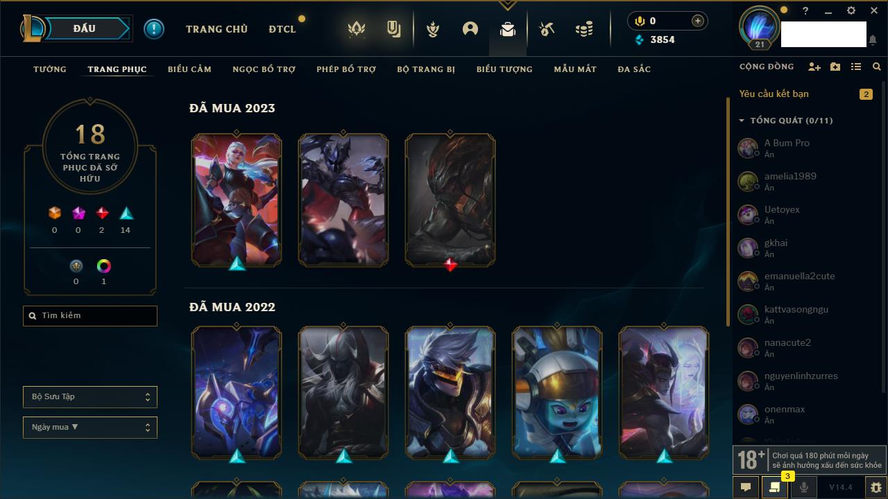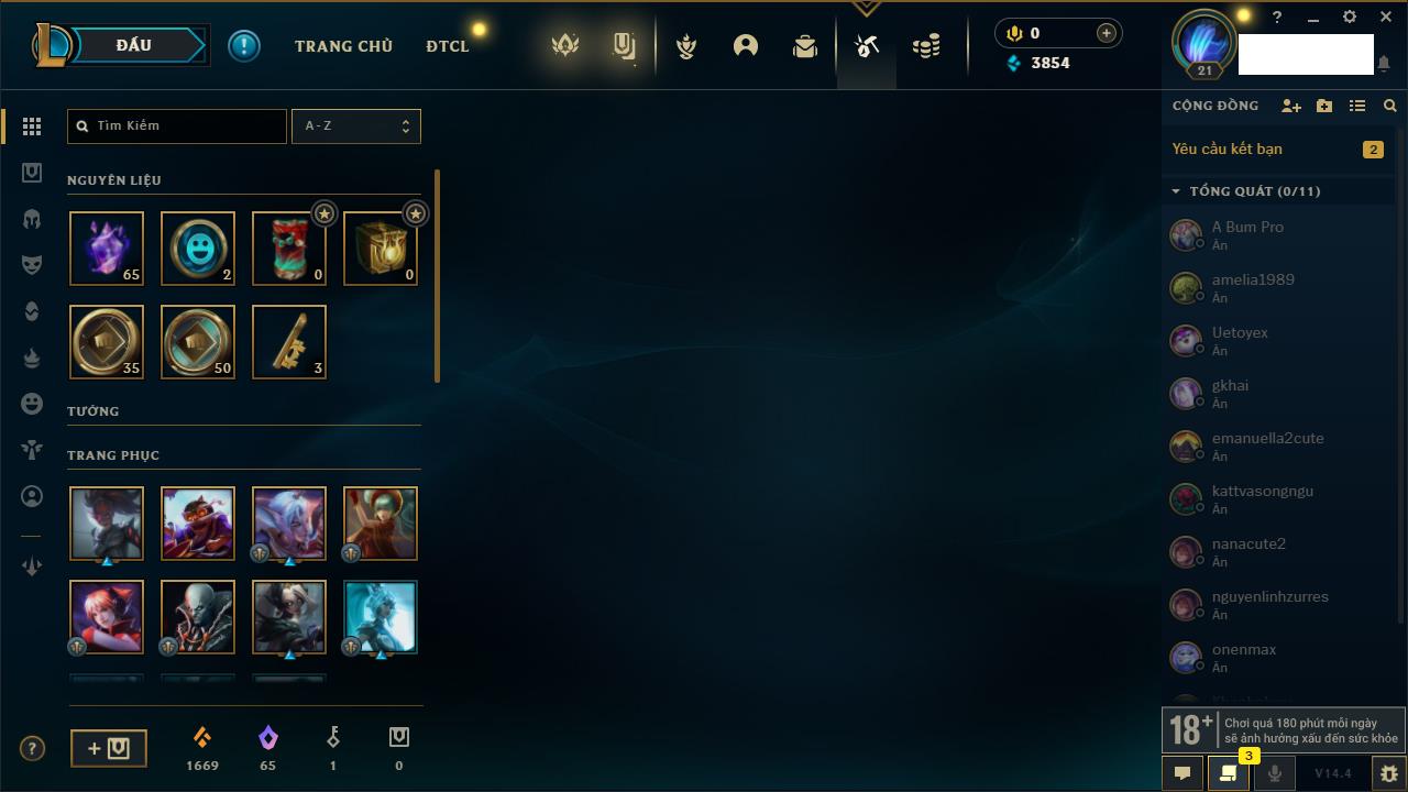 Rank Đơn: Chưa rank mùa nàoKhung: Chưa có khungTướng: 147 - Còn 13200 THXTrang Phục: 0Rank ĐTCL: Chưa RankLinh Thú: 2
