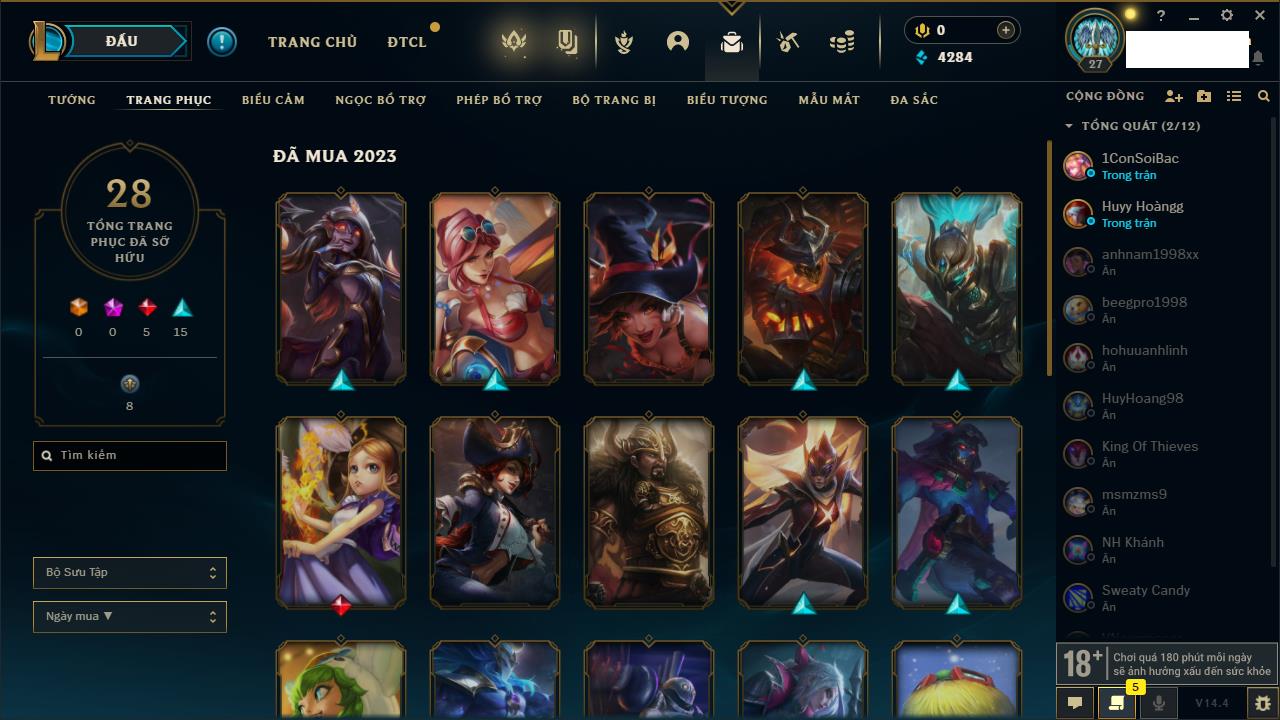 Rank Đơn: Vàng IIIKhung: BạcTướng: 56 - Còn 910 THXTrang Phục: 9Rank ĐTCL: Chưa RankLinh Thú: 31