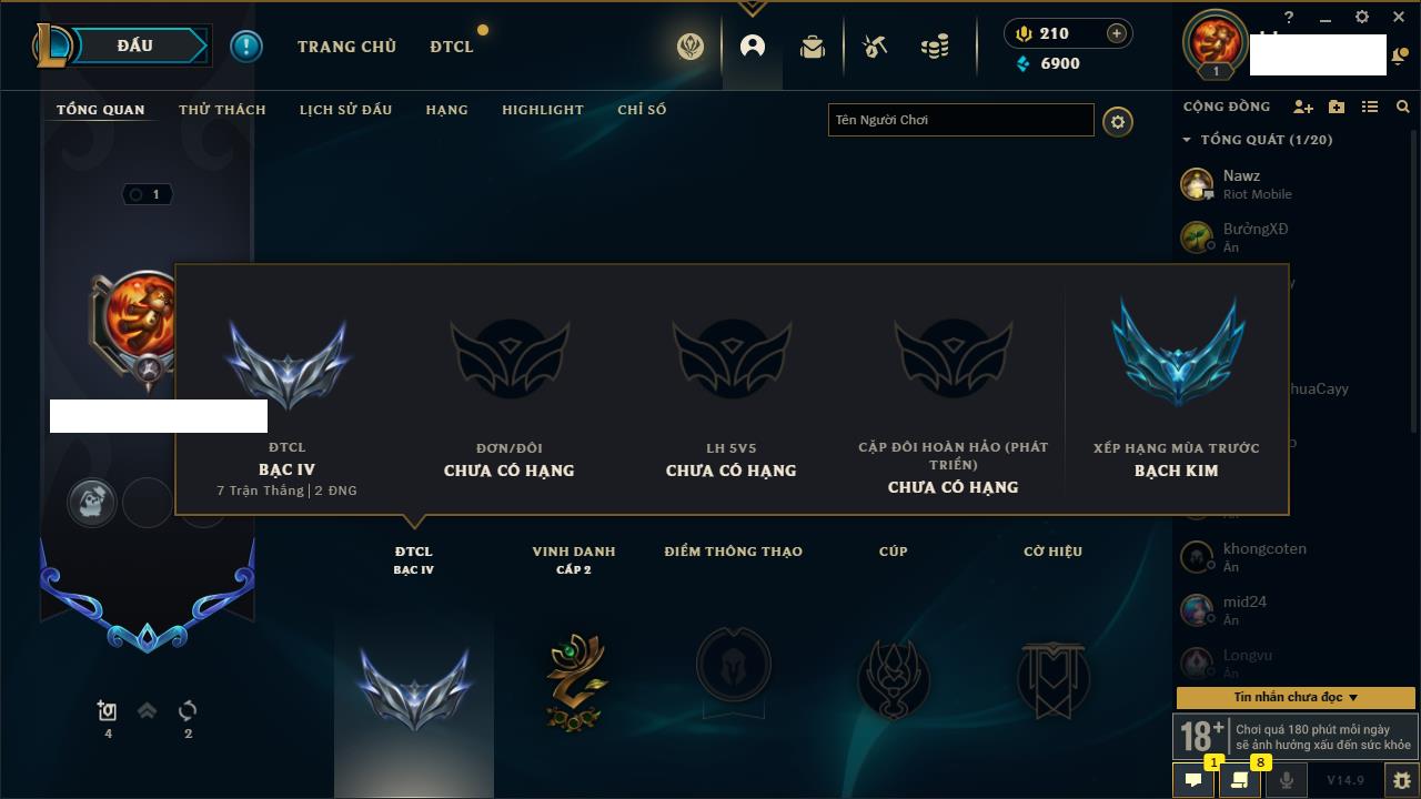 Rank Đơn: Chưa rank mùa nàoKhung: Chưa có khungTướng: 0 - Còn 600 THXTrang Phục: 0Rank ĐTCL: Chưa RankLinh Thú: 32