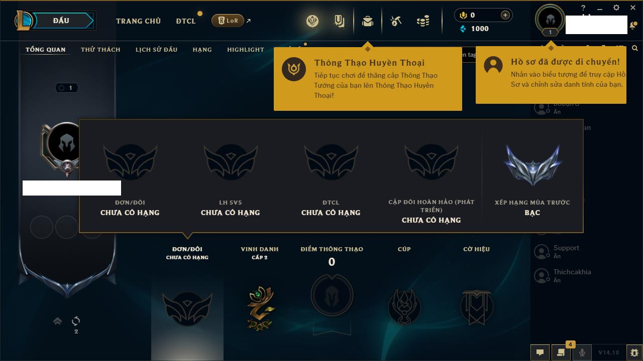 Rank Đơn: Chưa rank mùa nàoKhung: Chưa có khungTướng: 0 - Còn 600 THXTrang Phục: 0Rank ĐTCL: Chưa RankLinh Thú: 21
