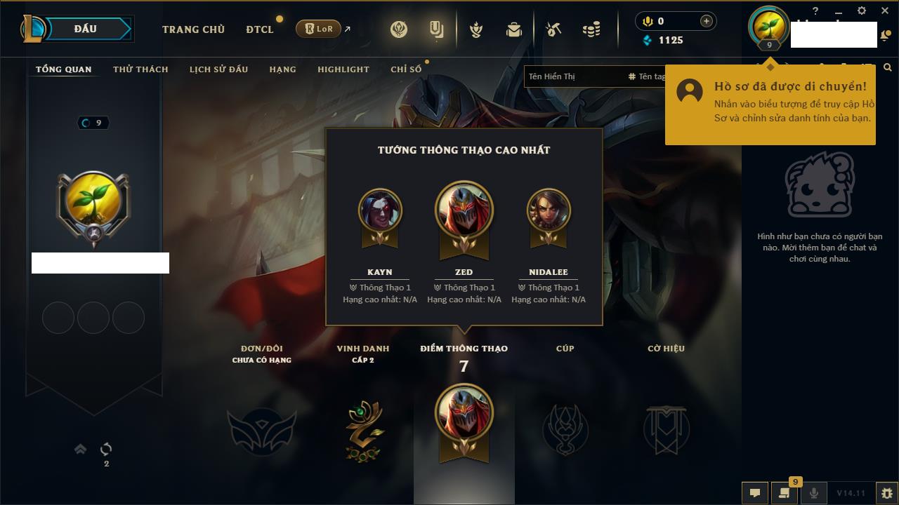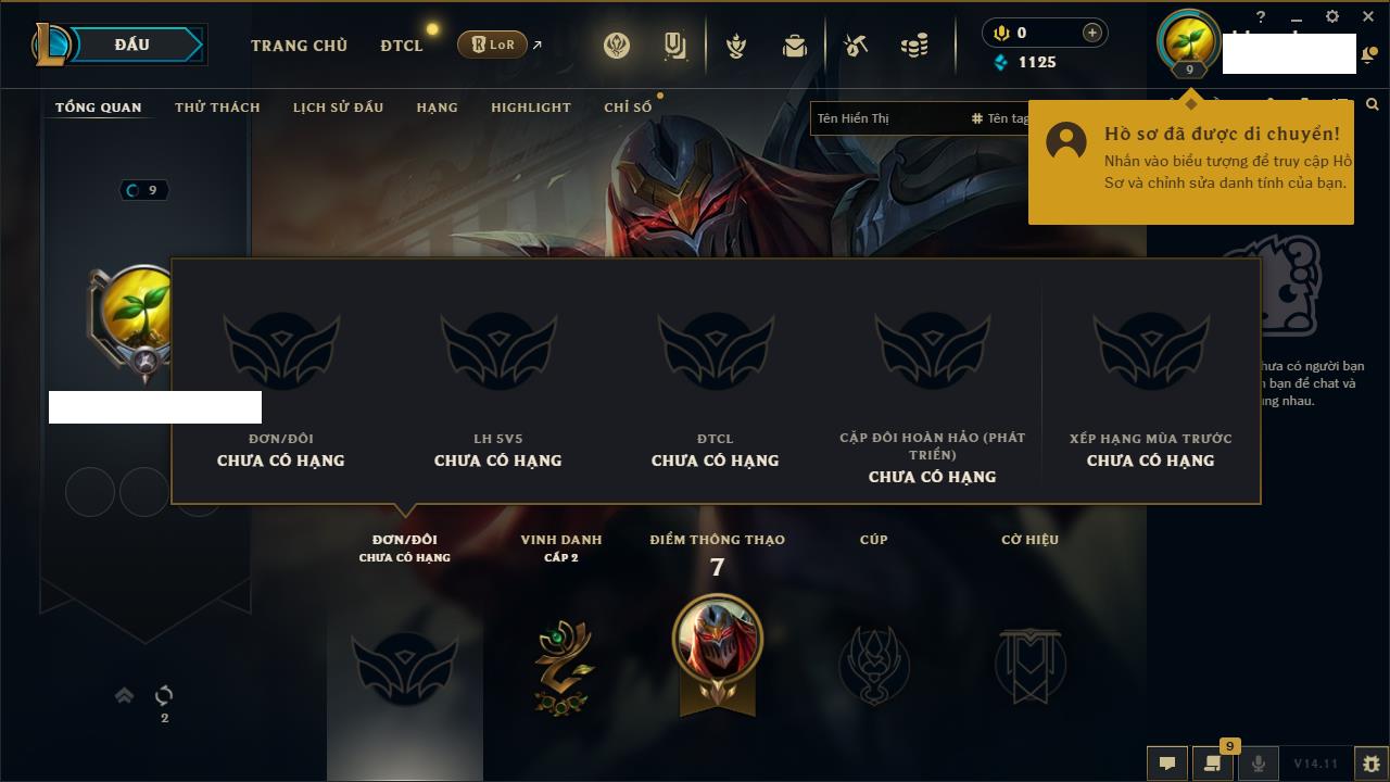 Acc #264126: Khung Chưa có khung - Rank Chưa rank mùa nào