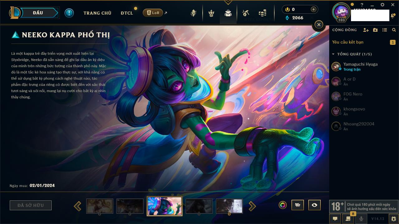 Rank Đơn: Đồng IIKhung: ĐồngTướng: 170 - Còn 95773 THXTrang Phục: 170Rank ĐTCL: Chưa RankLinh Thú: 32