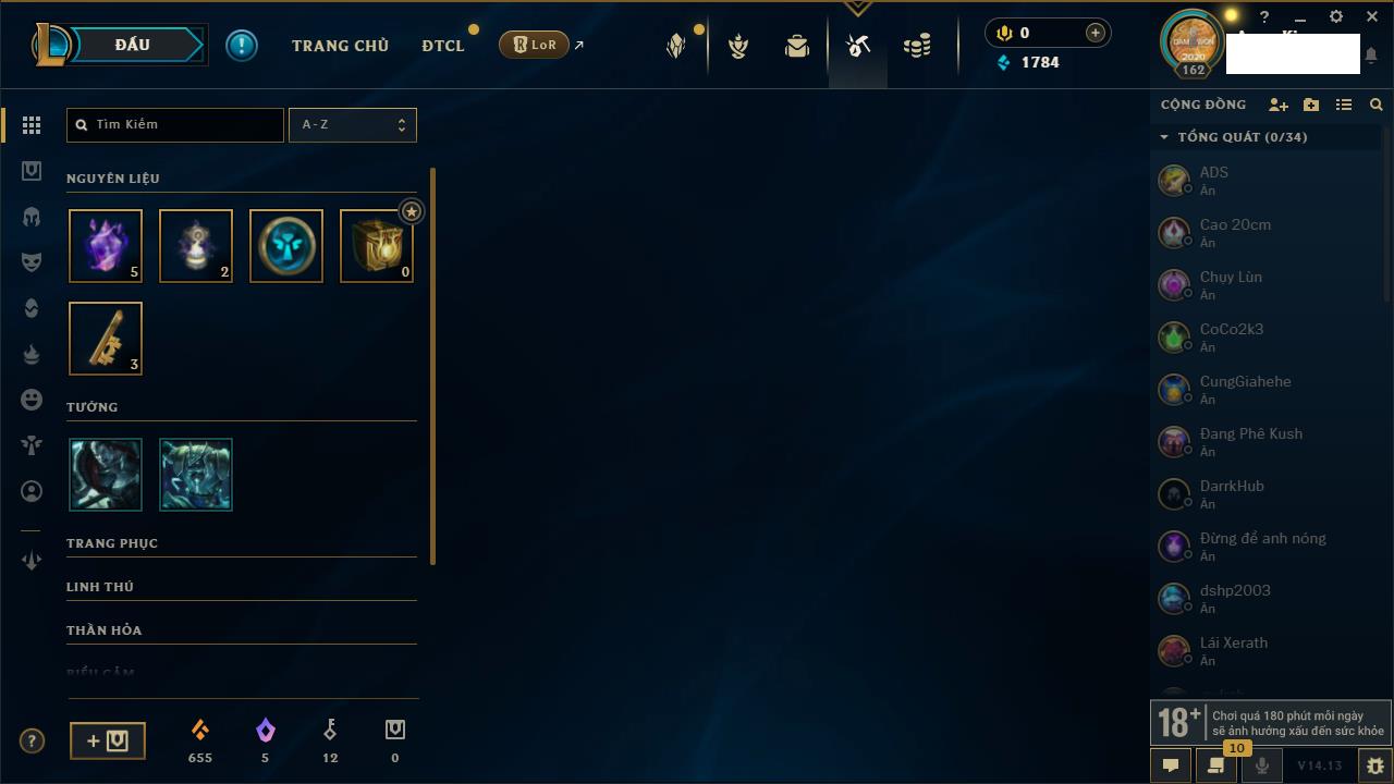 Rank Đơn: Chưa rank mùa nàoKhung: Chưa có khungTướng: 0 - Còn 2000 THXTrang Phục: 0Rank ĐTCL: Chưa RankLinh Thú: 14