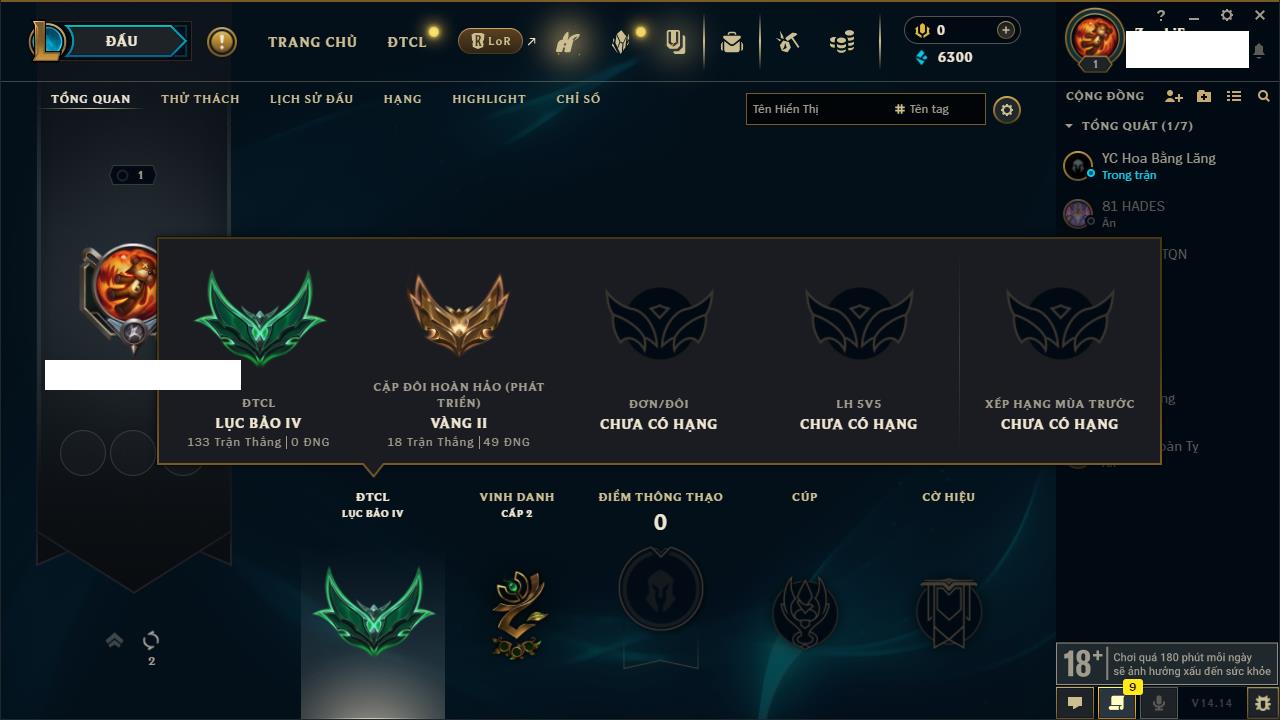 Rank Đơn: Chưa rank mùa nàoKhung: Chưa có khungTướng: 0 - Còn 600 THXTrang Phục: 0Rank ĐTCL: Chưa RankLinh Thú: 32