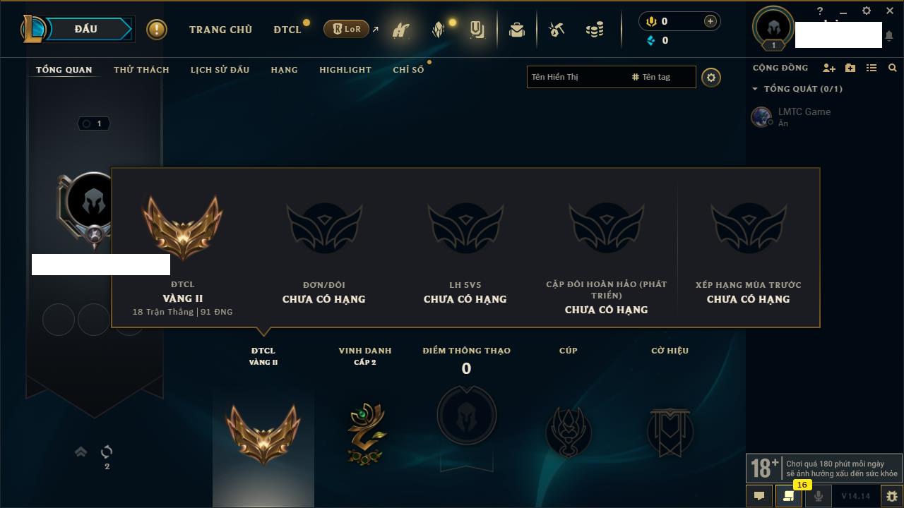 Rank Đơn: Chưa rank mùa nàoKhung: Chưa có khungTướng: 0 - Còn 0 THXTrang Phục: 0Rank ĐTCL: Chưa RankLinh Thú: 23