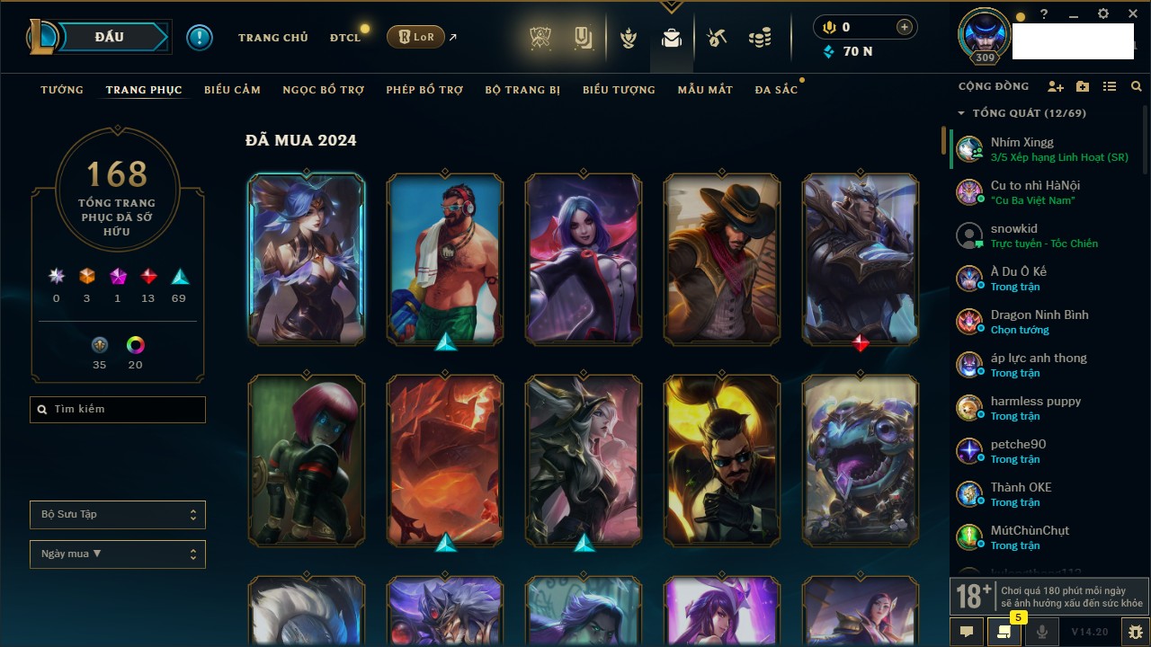 Rank Đơn: Chưa Rank Khung: Chưa có khung Tướng: 159 - Còn 6080 THX Trang Phục: 136 Rank ĐTCL: Chưa Rank Linh Thú: 29