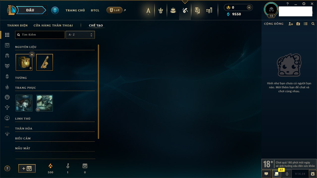 Rank Đơn: Chưa rank mùa nàoKhung: Chưa có khungTướng: 22 - Còn 1025 THXTrang Phục: 3Rank ĐTCL: Chưa RankLinh Thú: 58