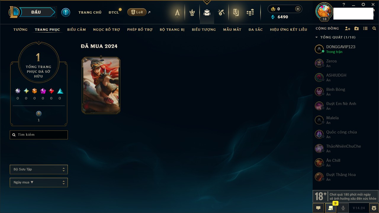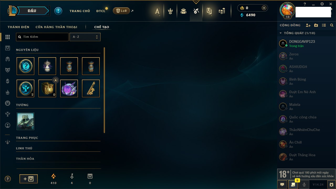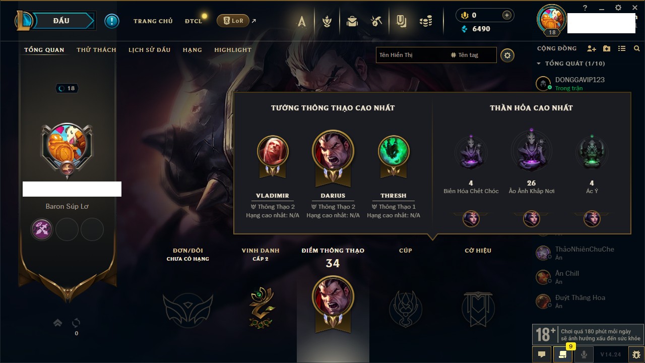 Rank Đơn: Chưa rank mùa nàoKhung: Chưa có khungTướng: 25 - Còn 3980 THXTrang Phục: 0Rank ĐTCL: Chưa RankLinh Thú: 25