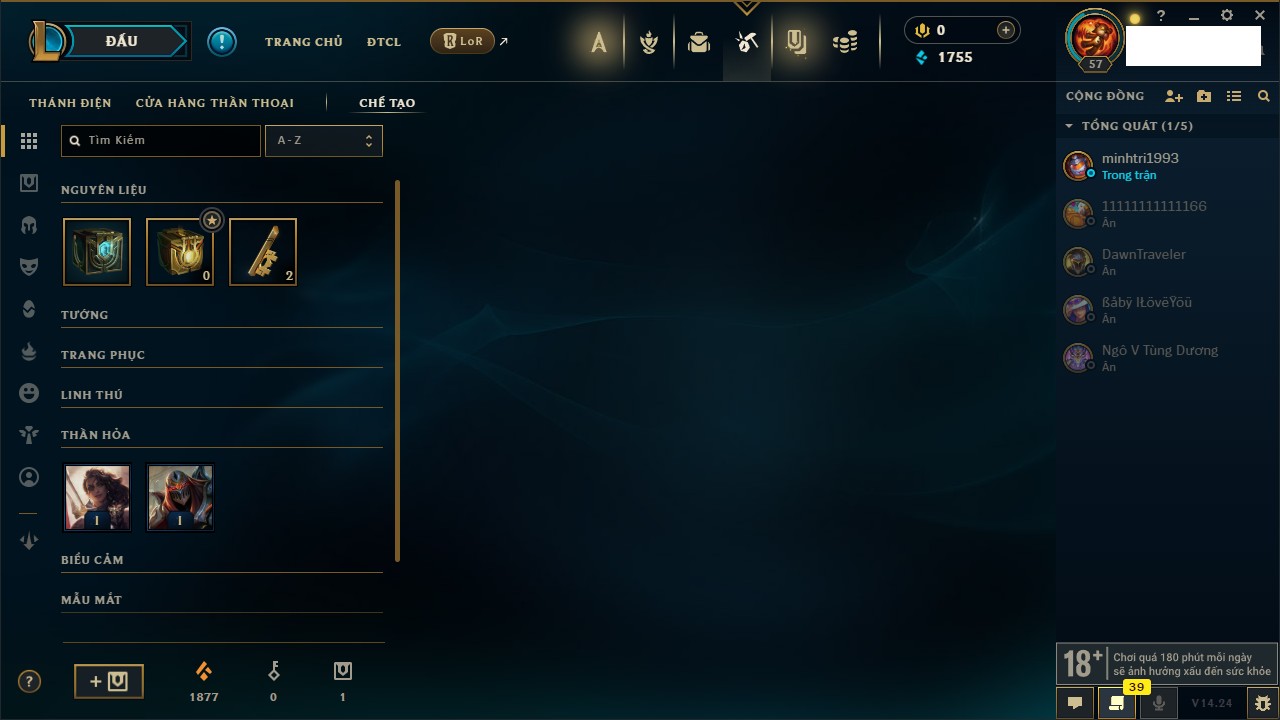 Rank Đơn: Chưa rank mùa nàoKhung: Chưa có khungTướng: 28 - Còn 5900 THXTrang Phục: 0Rank ĐTCL: Chưa RankLinh Thú: 2