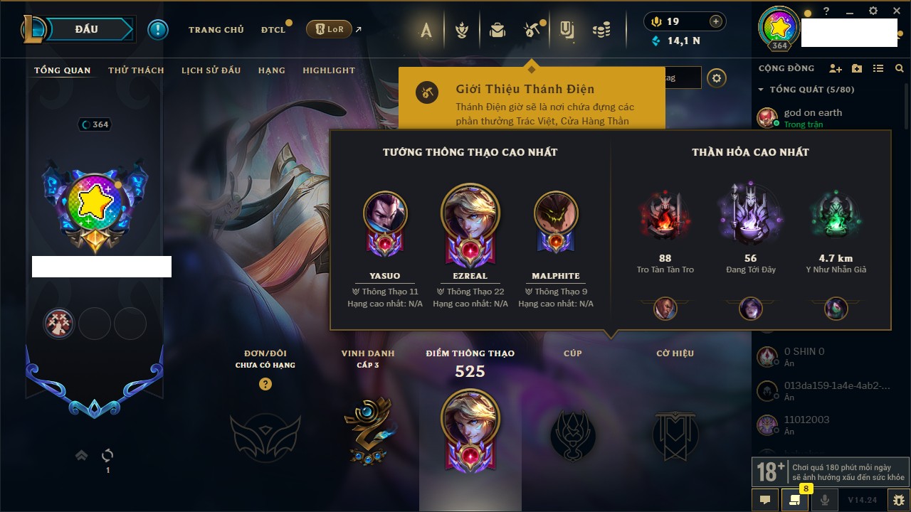 - Cấp 527 - 180,925 IP - Yasuo 634,686 Thông Thạo