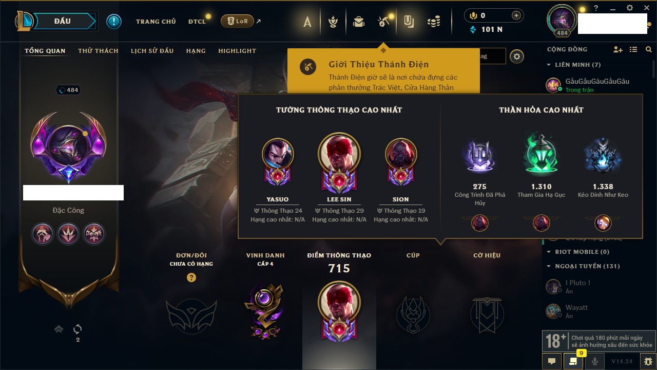 - Cấp 527 - 180,925 IP - Yasuo 634,686 Thông Thạo