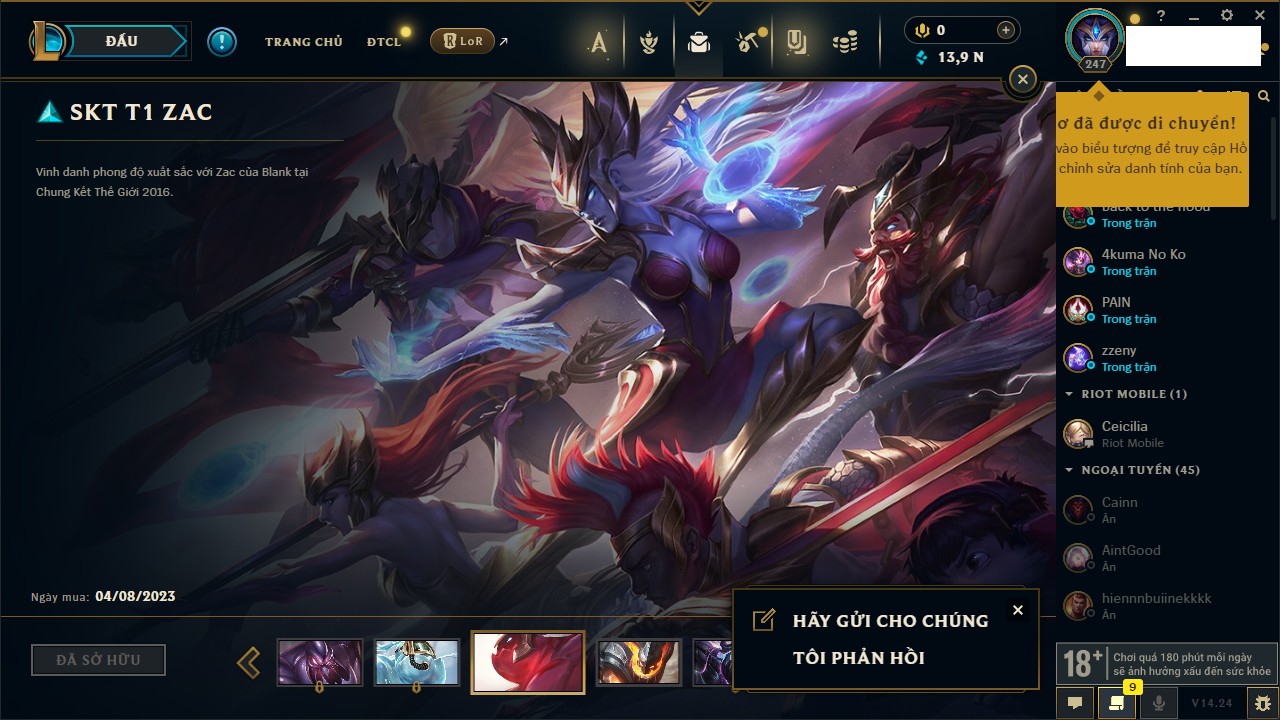 Tài Khoản Riot VNG : Đổi Được Mail Và Mật Khẩu. Xem Hướng Dẫn Tại Đây