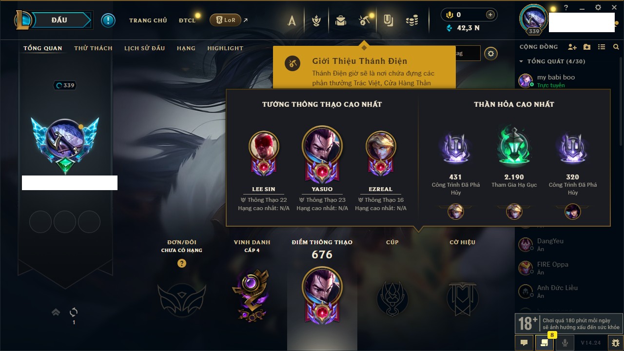 - Cấp 527 - 180,925 IP - Yasuo 634,686 Thông Thạo