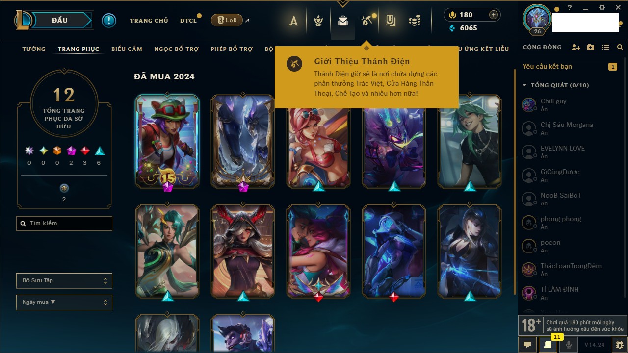 Rank Đơn: Chưa rank mùa nàoKhung: Chưa có khungTướng: 12 - Còn 3853 THXTrang Phục: 2Rank ĐTCL: Chưa RankLinh Thú: 30