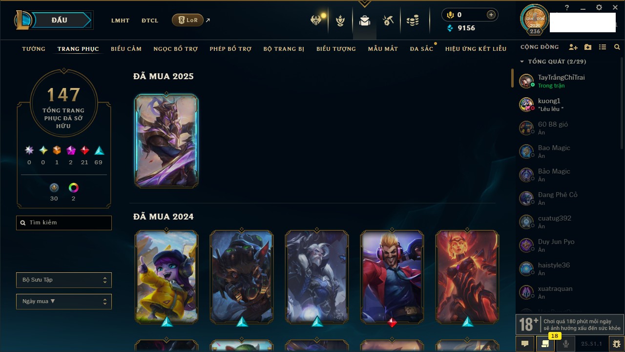 Rank Đơn: Lục Bảo IVKhung: Lục BảoTướng: 171 - Còn 147073 THXTrang Phục: 185Rank ĐTCL: Chưa RankLinh Thú: 95