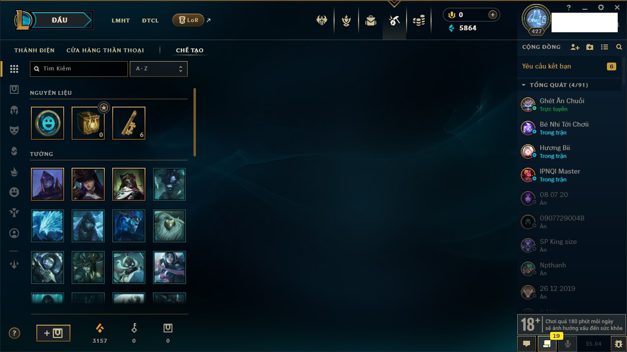 Rank Đơn: Chưa Rank Khung: Sắt Tướng: 161 - Còn 107294 THX Trang Phục: 86 Rank ĐTCL: Chưa Rank Linh Thú: 204