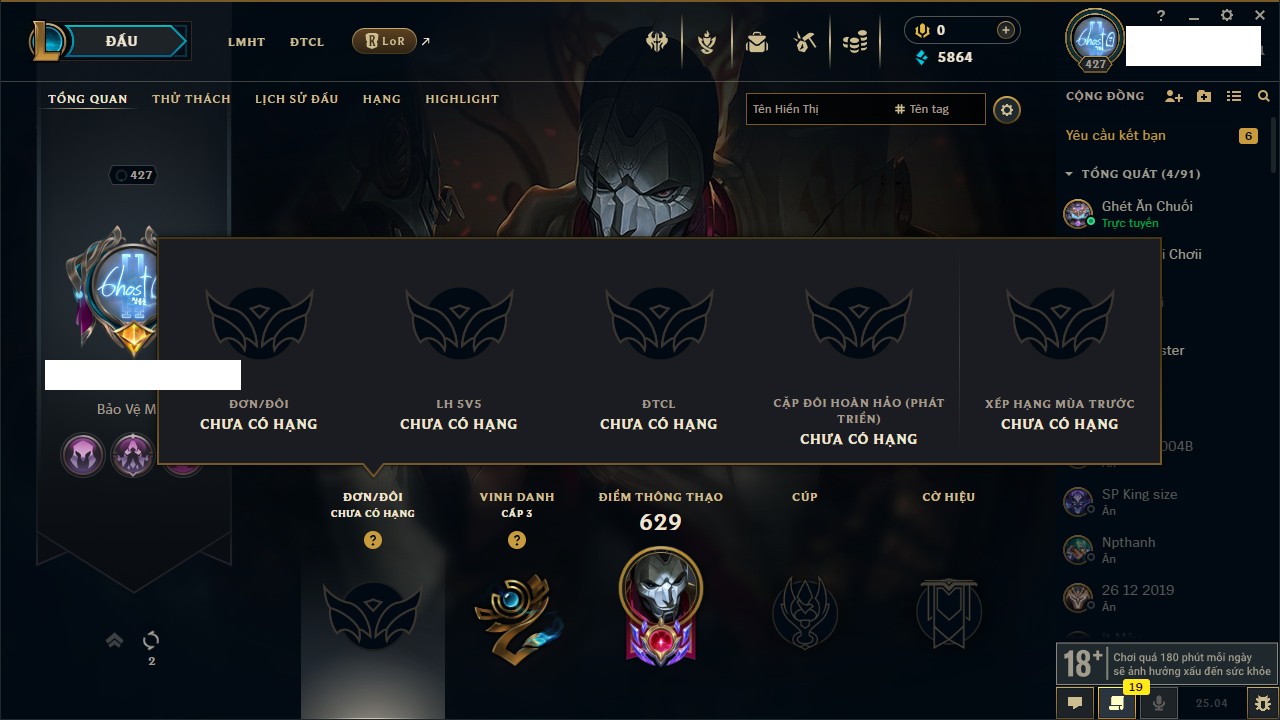 Rank Đơn: Chưa Rank Khung: Bạch kim Tướng: 170 - Còn 34575 THX Trang Phục: 220 Rank ĐTCL: Chưa Rank Linh Thú: 178