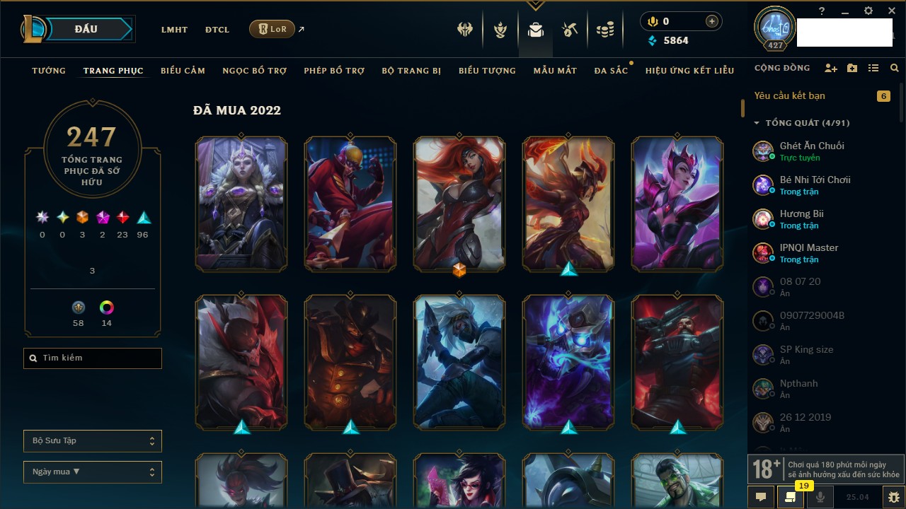 Rank Đơn: Chưa Rank Khung: Chưa có khung Tướng: 170 - Còn 42144 THX Trang Phục: 82 Rank ĐTCL: Chưa Rank Linh Thú: 130