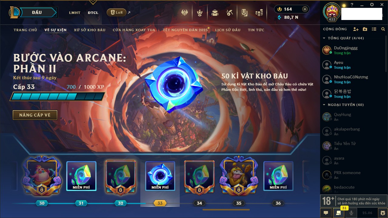 Rank Đơn: Chưa RankKhung: Chưa có khungTướng: 157 - Còn 6783 THXTrang Phục: 50Rank ĐTCL: Chưa RankLinh Thú: 37