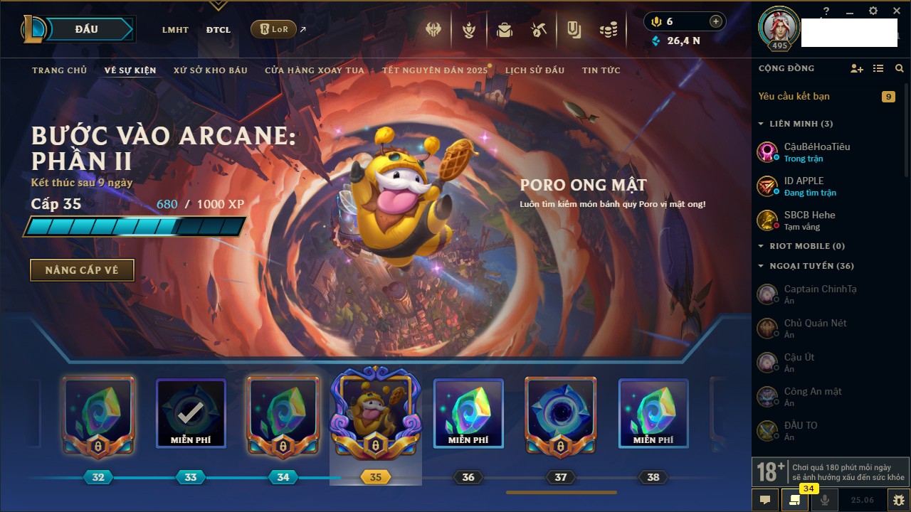 Rank Đơn: Vàng IVKhung: VàngTướng: 171 - Còn 660284 THXTrang Phục: 199Rank ĐTCL: Chưa RankLinh Thú: 34