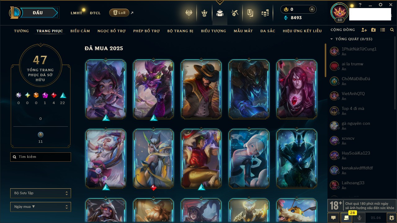 Rank Đơn: Chưa rank mùa nàoKhung: Chưa có khungTướng: 157 - Còn 8493 THXTrang Phục: 47Rank ĐTCL: Chưa RankLinh Thú: 81