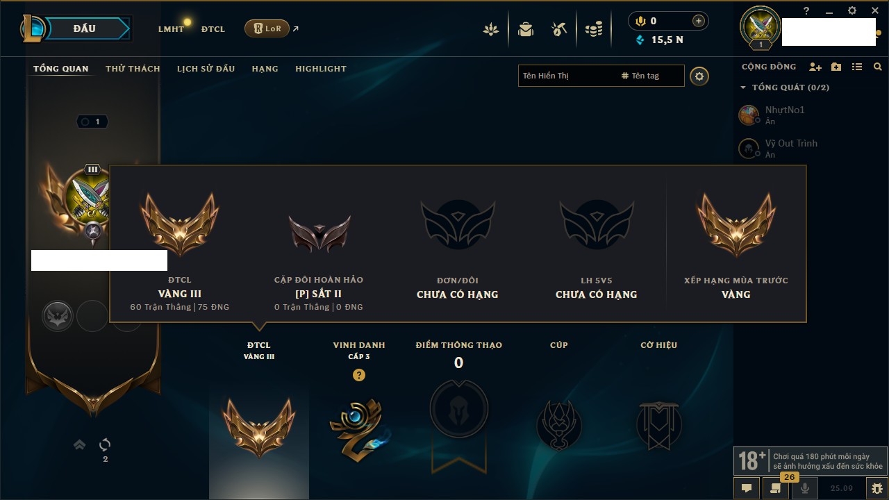Rank Đơn: Chưa rank mùa nàoKhung: Chưa có khungTướng: 0 - Còn 7200 THXTrang Phục: 0Rank ĐTCL: Chưa RankLinh Thú: 11