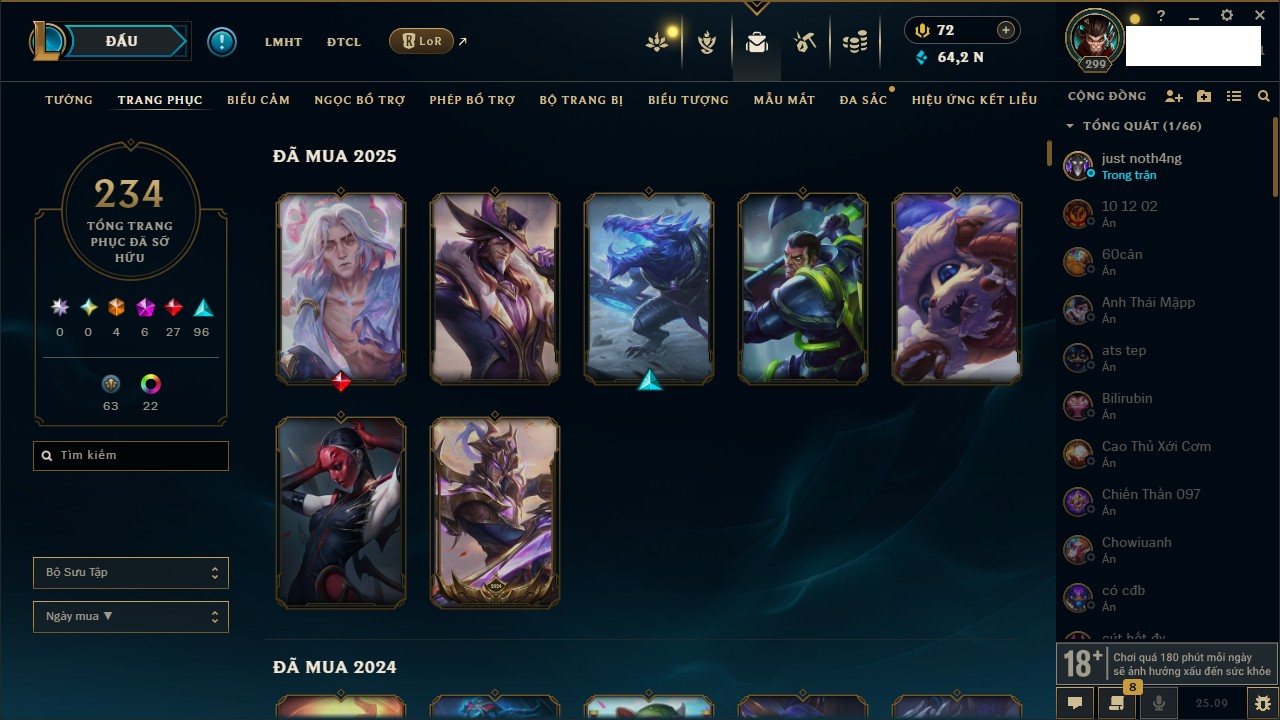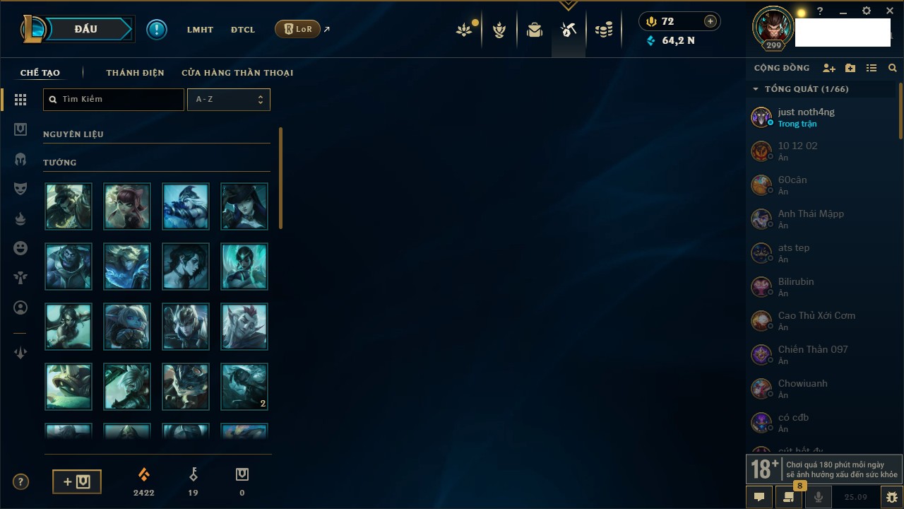 Rank Đơn: Đồng IIKhung: Chưa có khungTướng: 170 - Còn 2078 THXTrang Phục: 72Rank ĐTCL: Đồng ILinh Thú: 133