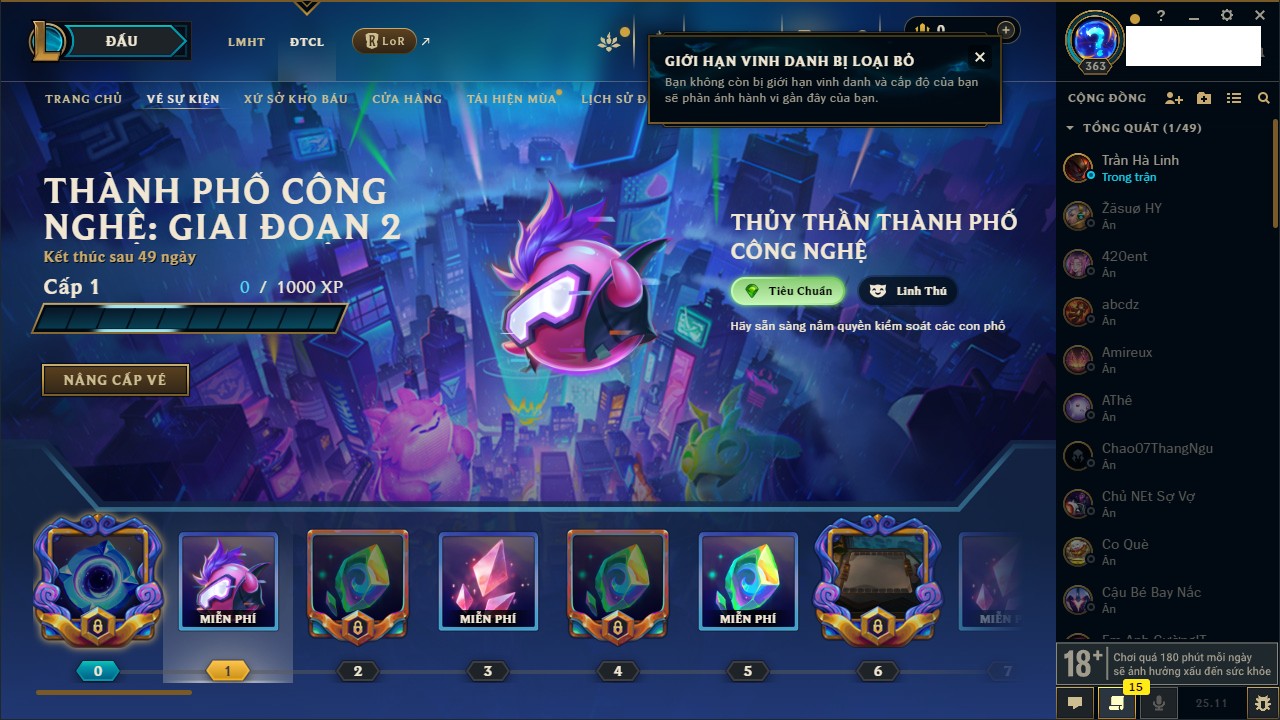 Rank Đơn: Bạc IIIKhung: BạcTướng: 171 - Còn 190352 THXTrang Phục: 260Rank ĐTCL: Sắt IILinh Thú: 31