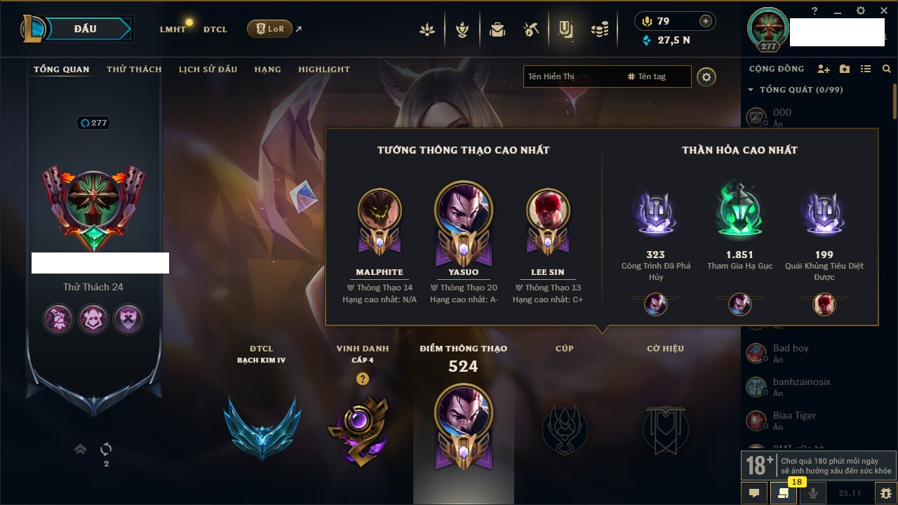 - Cấp 527 - 180,925 IP - Yasuo 634,686 Thông Thạo