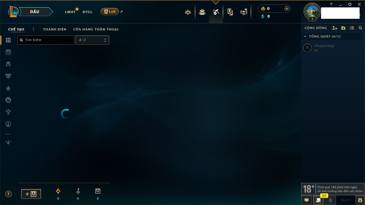 Rank Đơn: Sắt IIKhung: Chưa có khungTướng: 41 - Còn 2424 THXTrang Phục: 24Rank ĐTCL: Chưa RankLinh Thú: 154