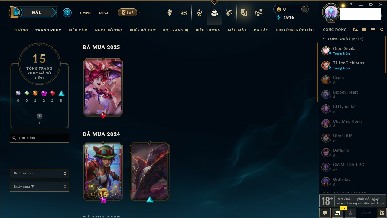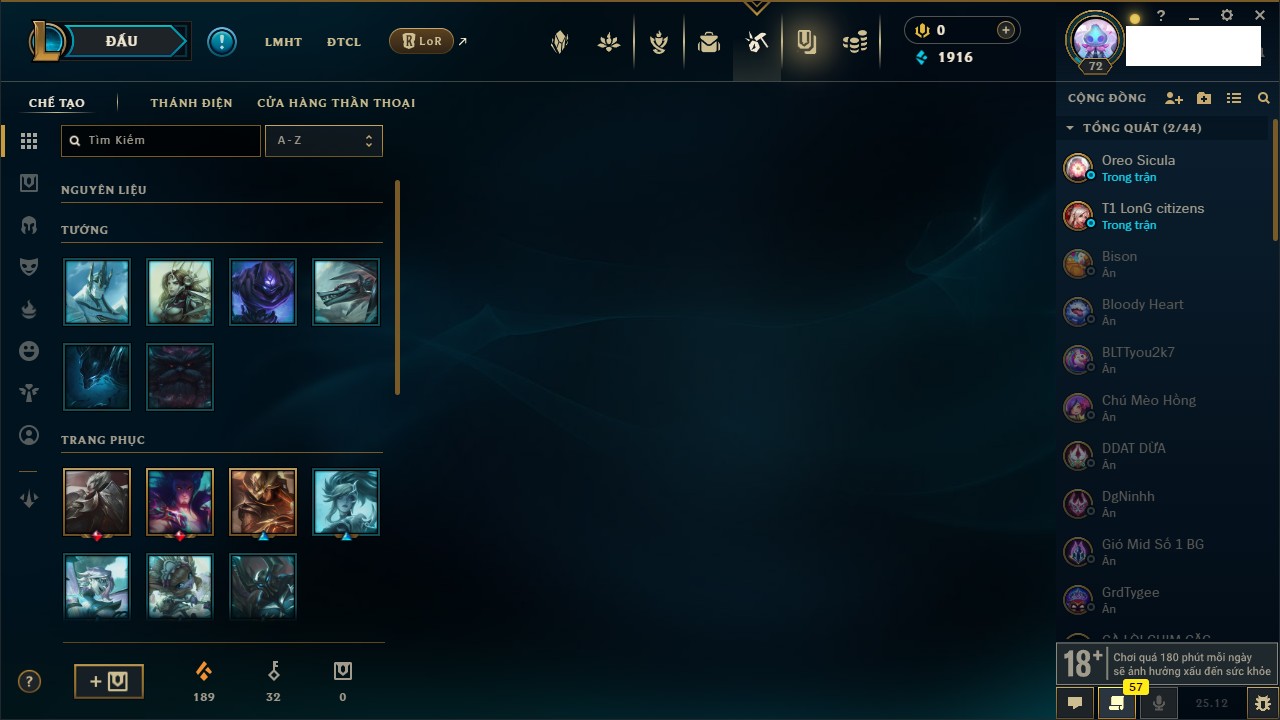 Rank Đơn: Chưa rank mùa nàoKhung: Chưa có khungTướng: 166 - Còn 3090 THXTrang Phục: 9Rank ĐTCL: Chưa RankLinh Thú: 125