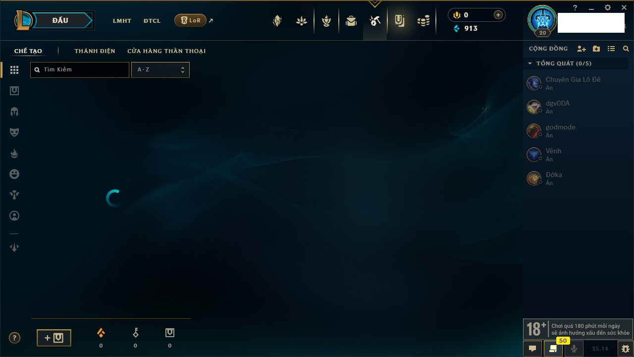 Rank Đơn: Chưa rank mùa nàoKhung: Chưa có khungTướng: 0 - Còn 4000 THXTrang Phục: 0Rank ĐTCL: Đồng ILinh Thú: 18