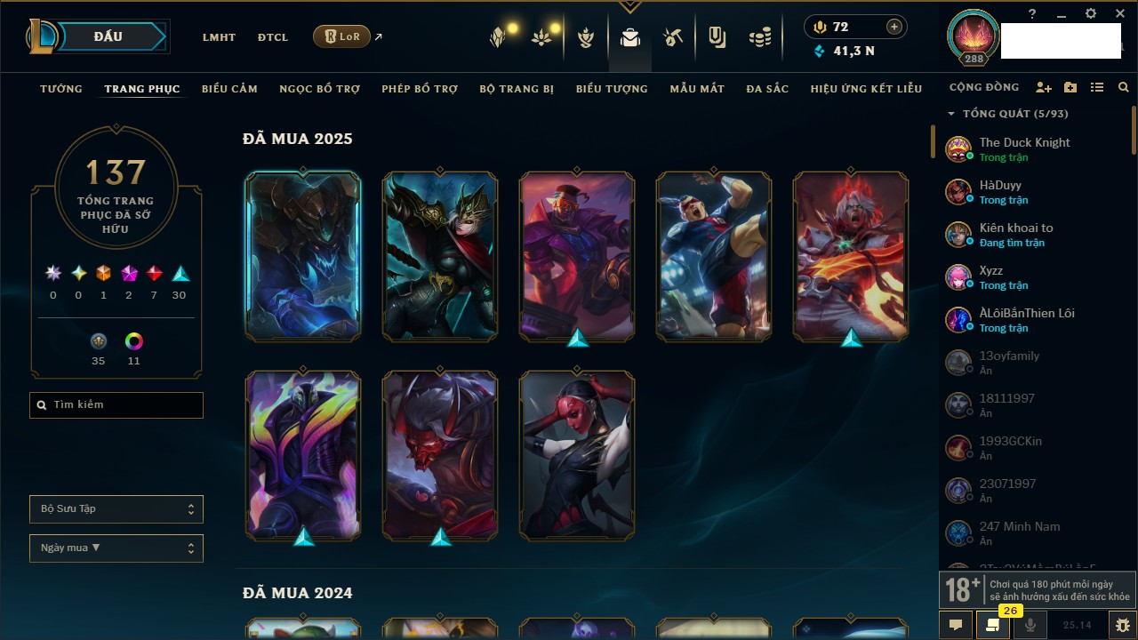 Rank Đơn: Bạc III Khung: Chưa có khung Tướng: 154 - Còn 8775 THX Trang Phục: 136 Rank ĐTCL: Chưa Rank Linh Thú: 22