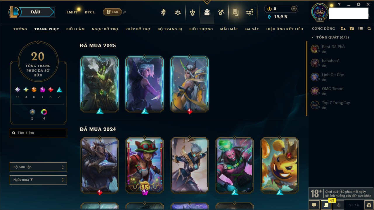 Rank Đơn: Đồng IKhung: ĐồngTướng: 168 - Còn 11447 THXTrang Phục: 245Rank ĐTCL: Chưa RankLinh Thú: 53
