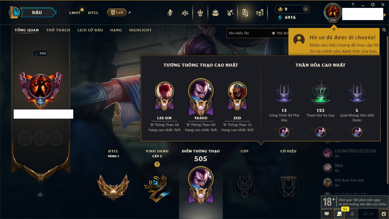 - Cấp 527 - 180,925 IP - Yasuo 634,686 Thông Thạo