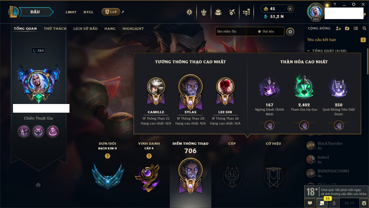 Acc #338162: Khung Bạch kim - Rank Bạch Kim II