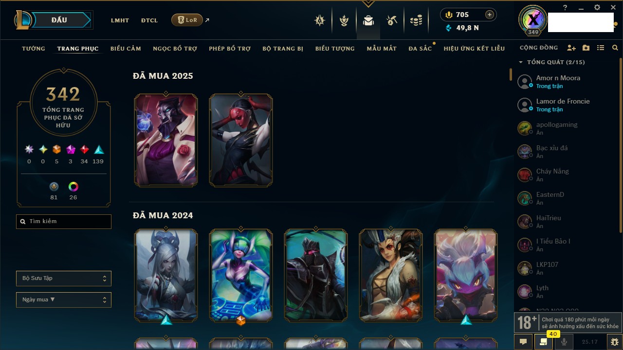 Rank Đơn: Bạc III Khung: Bạc Tướng: 170 - Còn 30078 THX Trang Phục: 225 Rank ĐTCL: Chưa Rank Linh Thú: 138