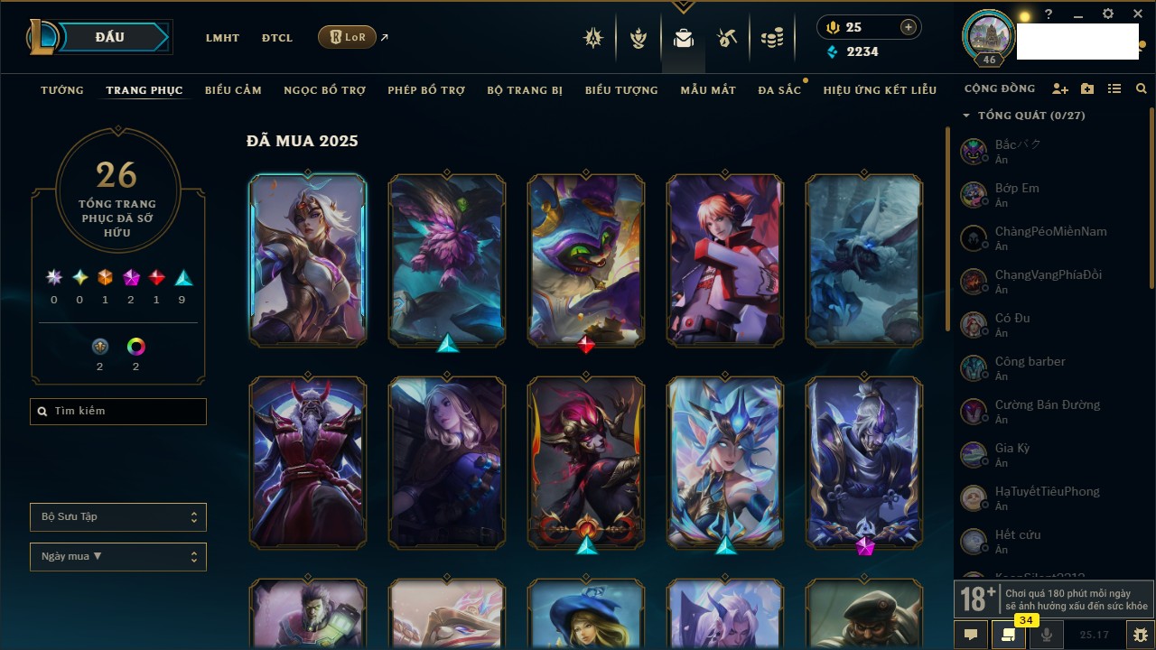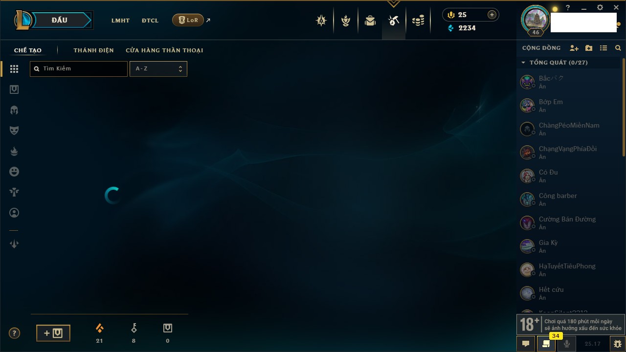 Rank Đơn: Chưa Rank Khung: Chưa có khung Tướng: 171 - Còn 52162 THX Trang Phục: 78 Rank ĐTCL: Chưa Rank Linh Thú: 145