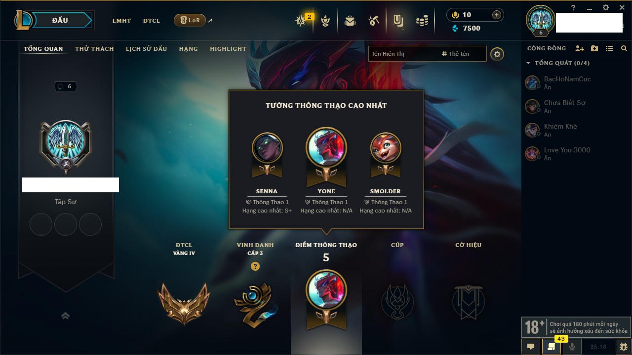 Rank Đơn: Chưa rank mùa nàoKhung: Chưa có khungTướng: 0 - Còn 4000 THXTrang Phục: 0Rank ĐTCL: Đồng ILinh Thú: 18