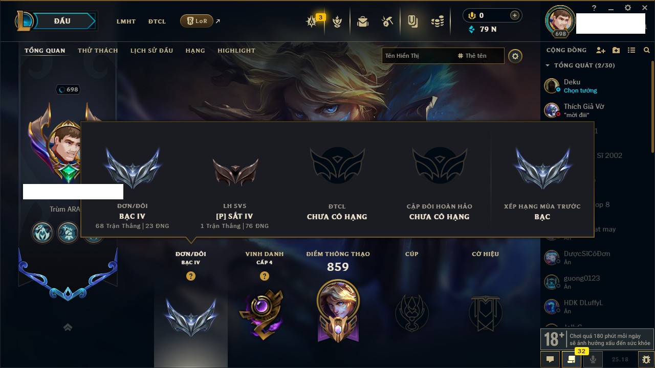 Acc #340700: Khung Bạc - Rank Bạc IV