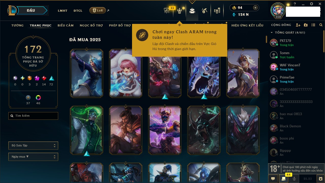 Rank Đơn: Đồng IKhung: ĐồngTướng: 168 - Còn 11447 THXTrang Phục: 245Rank ĐTCL: Chưa RankLinh Thú: 53