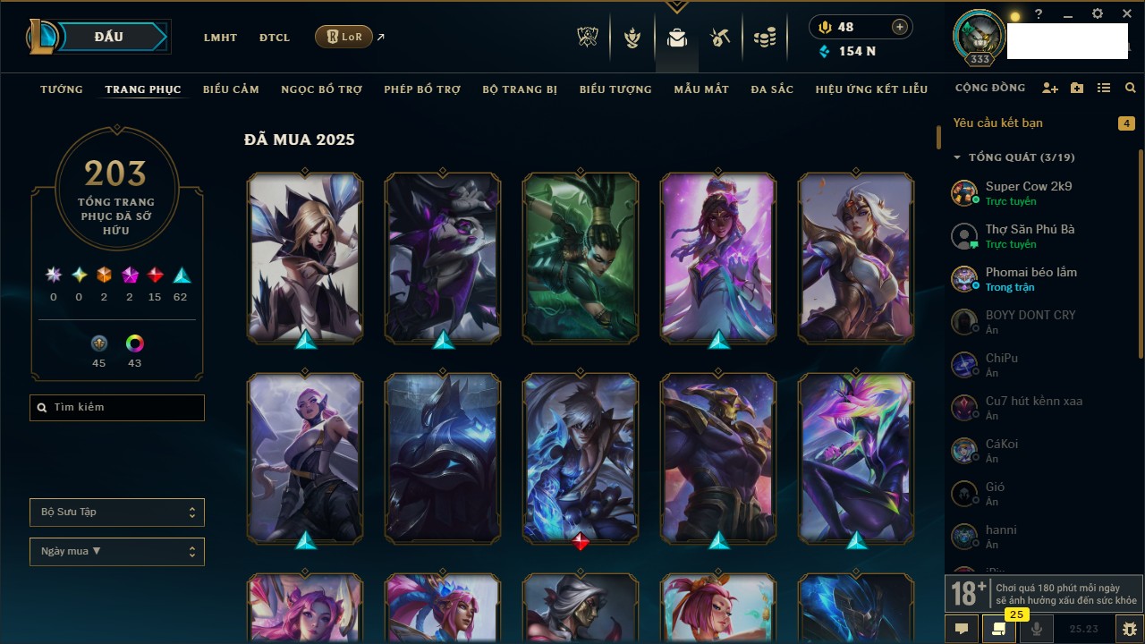 Rank Đơn: Bạch Kim IIKhung: Bạch kimTướng: 171 - Còn 316137 THXTrang Phục: 89Rank ĐTCL: Bạch Kim IIILinh Thú: 94