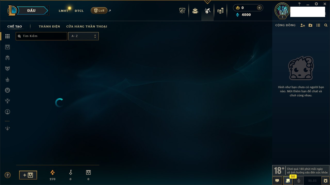 Rank Đơn: Chưa rank mùa nàoKhung: Chưa có khungTướng: 0 - Còn 4000 THXTrang Phục: 0Rank ĐTCL: Đồng ILinh Thú: 18