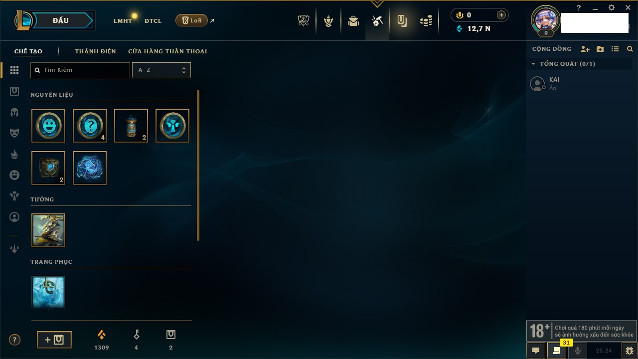 Rank Đơn: Chưa rank mùa nào Khung: Chưa có khung Tướng: 1 - Còn 6000 THX Trang Phục: 0 Rank ĐTCL: Chưa Rank Linh Thú: 18