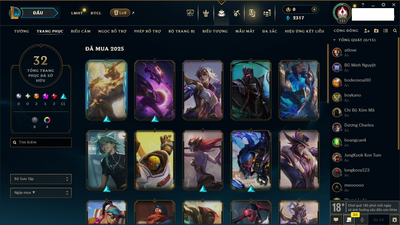 Rank Đơn: Chưa Rank Khung: Chưa có khung Tướng: 171 - Còn 52162 THX Trang Phục: 78 Rank ĐTCL: Chưa Rank Linh Thú: 145