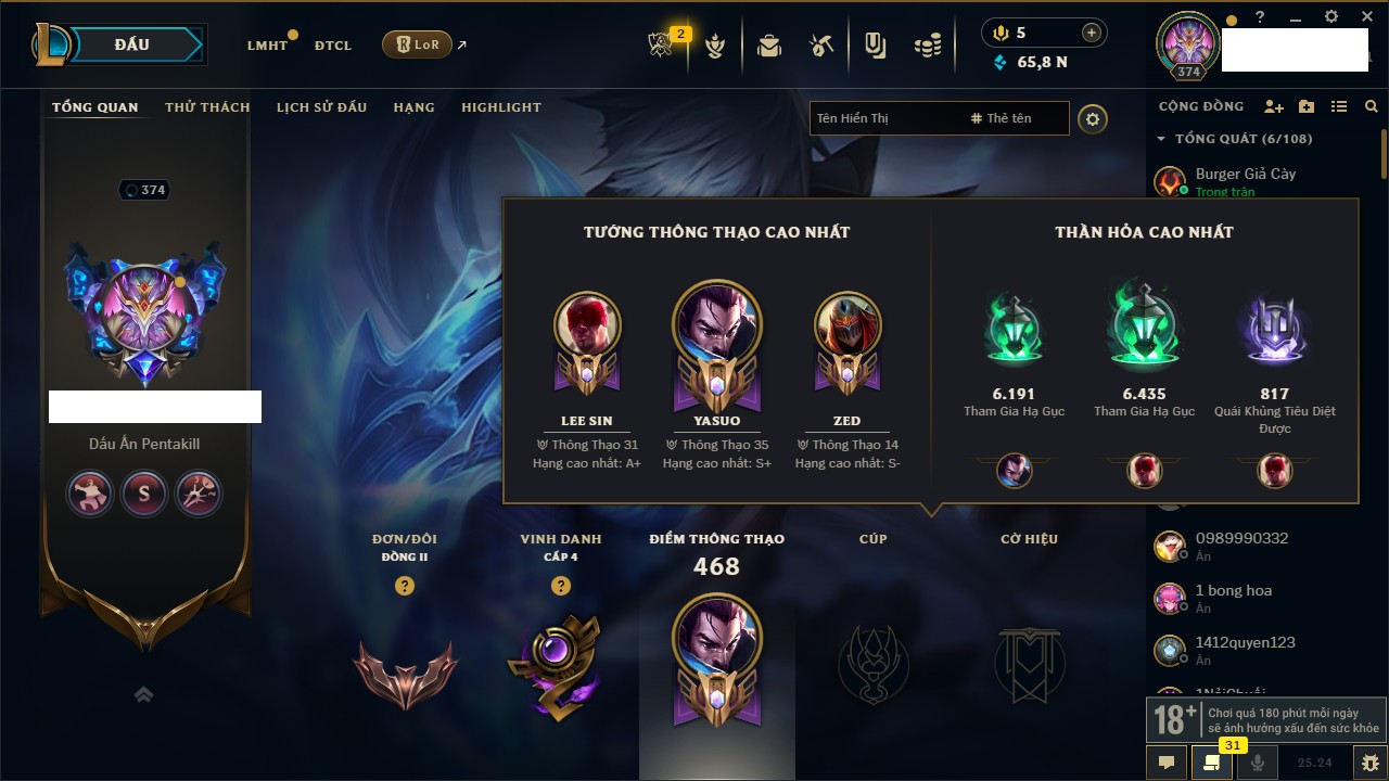 - Cấp 658 - 155,977 IP - Lee Sin 641,585 Thông Thạo